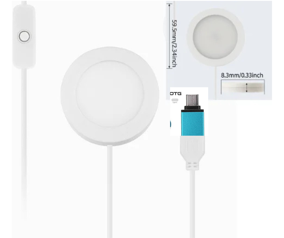 New USB C Type -3 W USB COB Plastic Body LED Lamp White Color Module with Switch – For 3D Printed Lamp; DIY Lamp Projects (Inspired by Bambu Lab Lamp LED Kit 001)