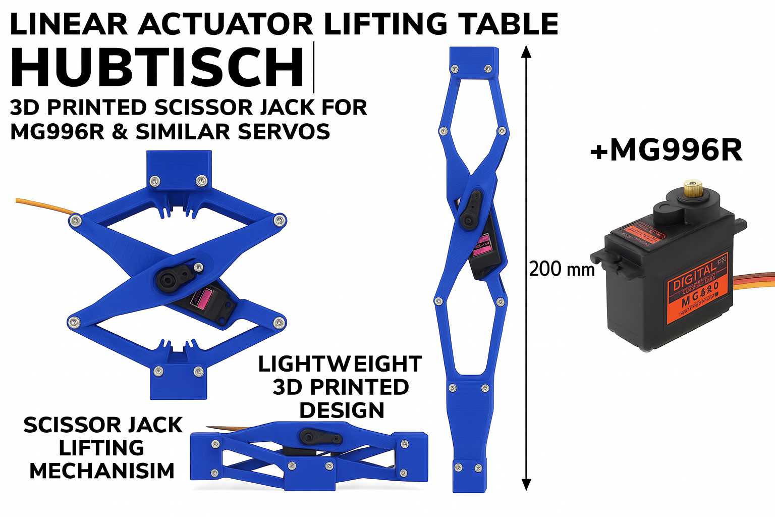 Linear Actuator Lifting Table Hubtisch Diy for Assembly | 3D Printed Scissor Jack Mechanism for MG996R Servo & Similar Motors | DIY Robotics & Automation Project Kit