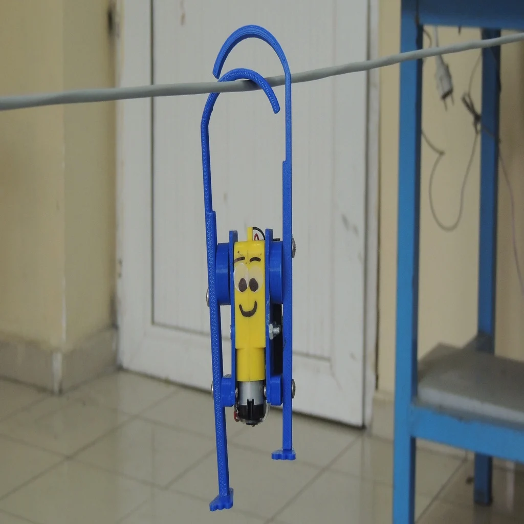 The robot uses a small DC motor, pulley system, and 3D-printed frame to climb a vertical rope, demonstrating basic principles of energy, friction, and mechanical motion. It offers hands-on learning for students and a unique way to explore physics and robotics in action.