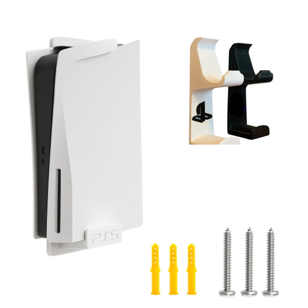 Wall-mounted game controller holder for PlayStation and Xbox. Screw-based installation for extra durability. Universal fit and sleek black finish.
